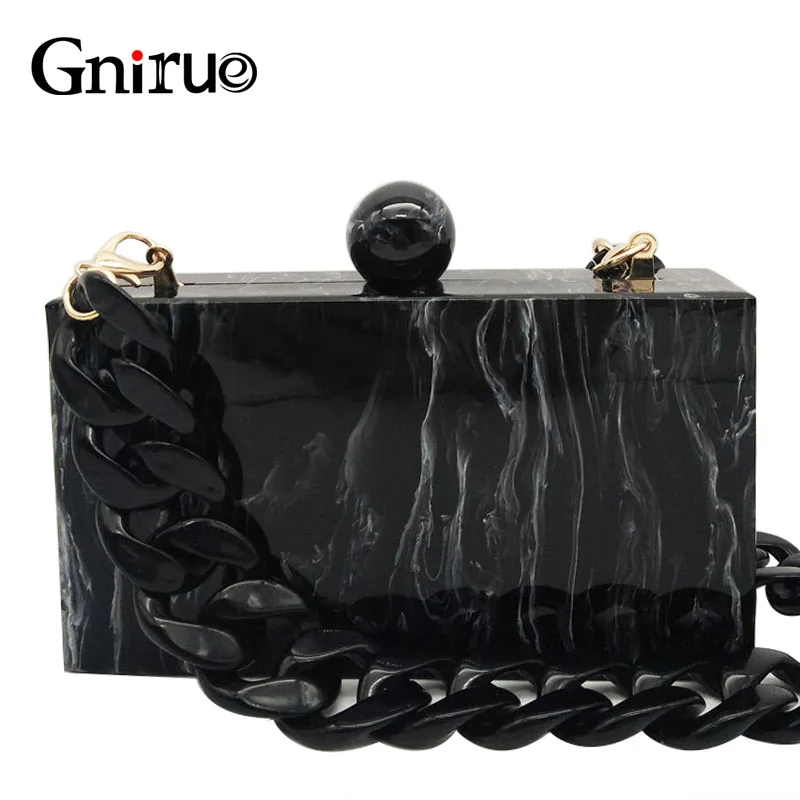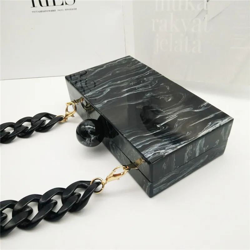 SALE New Fashion Marble Acrylic Wallet Women Messenger Bags Black White Ink Painting Evening Clutch Bags